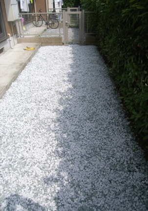 除草して砂利敷き。砂利の下は防草シートで雑草の繁茂を防いでいます。